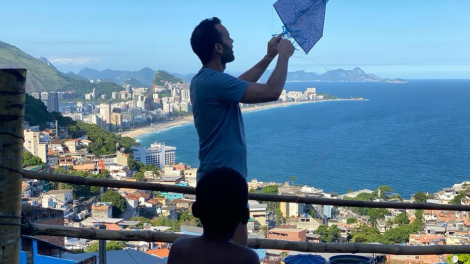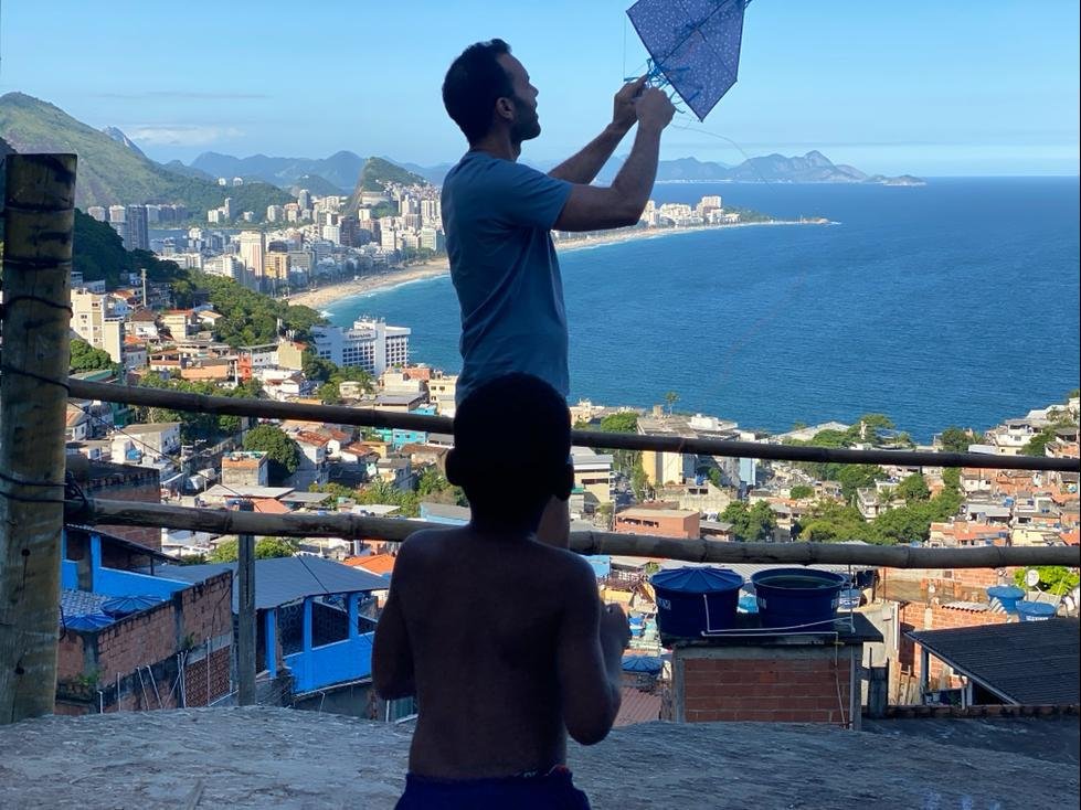 Nós estamos na favela e estou soltando pipa.